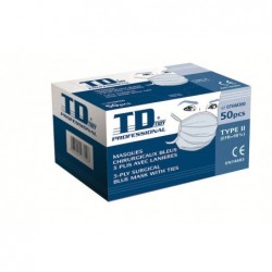 Хирургическа маска 3 слоя: ластици за прихващане към ушите или връзки за пристягане