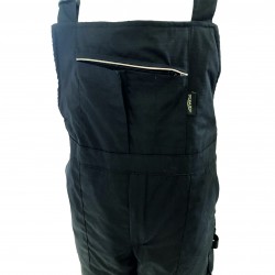 Между задния и десния страничен джоб, между предния ляв и страничния ляв джоб и над левия страничен джоб са оформени гайки от трегер лента за окачване на инструменти.