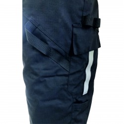 светлоотразяваща ивица върху щрифелките при крачолите и пришита по дължината на страничните джобове.