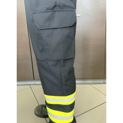Светлоотразяващи елементи: по две хоризонтални ленти от комбиниран светлоотразяващ материал (жълто/сиво/жълто) - около крачолите.