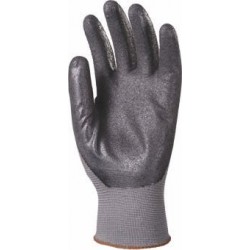 Материал: черен полиамид, плетени Длан: промазана със сива микропяна от нитрил Гръб: дишащ Маншет: ластичен