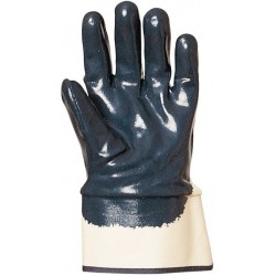 Материал: двуслойна нитрилна промазка синя Подложка: памучна Гръб: дишащ Маншет: защитен