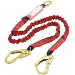 Поглъщател на енергия с 2 еластични предпазни ремъка 2 еластични полиестерни ремъка, широчина 44 mm Снабден с 2 алуминиеви скоби 71160 и 1 метален съединител на винт 71110 Здравина при статично натоварване: 15 kN Минимална здравина до скъсване 30 kN Минимално свободно пространство от точката на закачане - 6 m Дължина в разтегнато положение: 2 m Тегло 2000 g