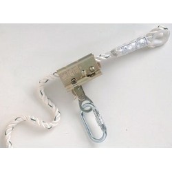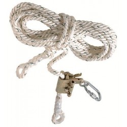Спирачно устройство срещу падане с водач по гъвкава осигурителна линия 10 метра Отваря се Монтирано на линията Въже ᴓ14 mm Здравина при статично натоварване : 15 kN 1 карабина 71110 Усукано въже 2 примки с покритие от полиетилен за предпазване Тегло: 2400 g (±10%)
