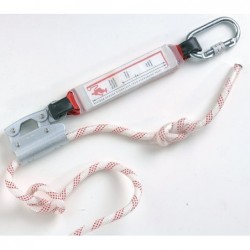 Спирачно устройство срещу падане с водач по гъвкава осигурителна линия 10 метра с поглъщател на енергия Не се отваря Монтирано на линията Въже с ᴓ12 mm Здравина при статично натовраване 15 kN 1 карабина 71110 Усукано въже с възел 1 примка покрита с полиетилен за предпазване + 1 примка с черно пластмасово покритие на поглъщателя на енергия Минимално свободно пространство от точката на закачане - 6 m Тегло: 1300 g